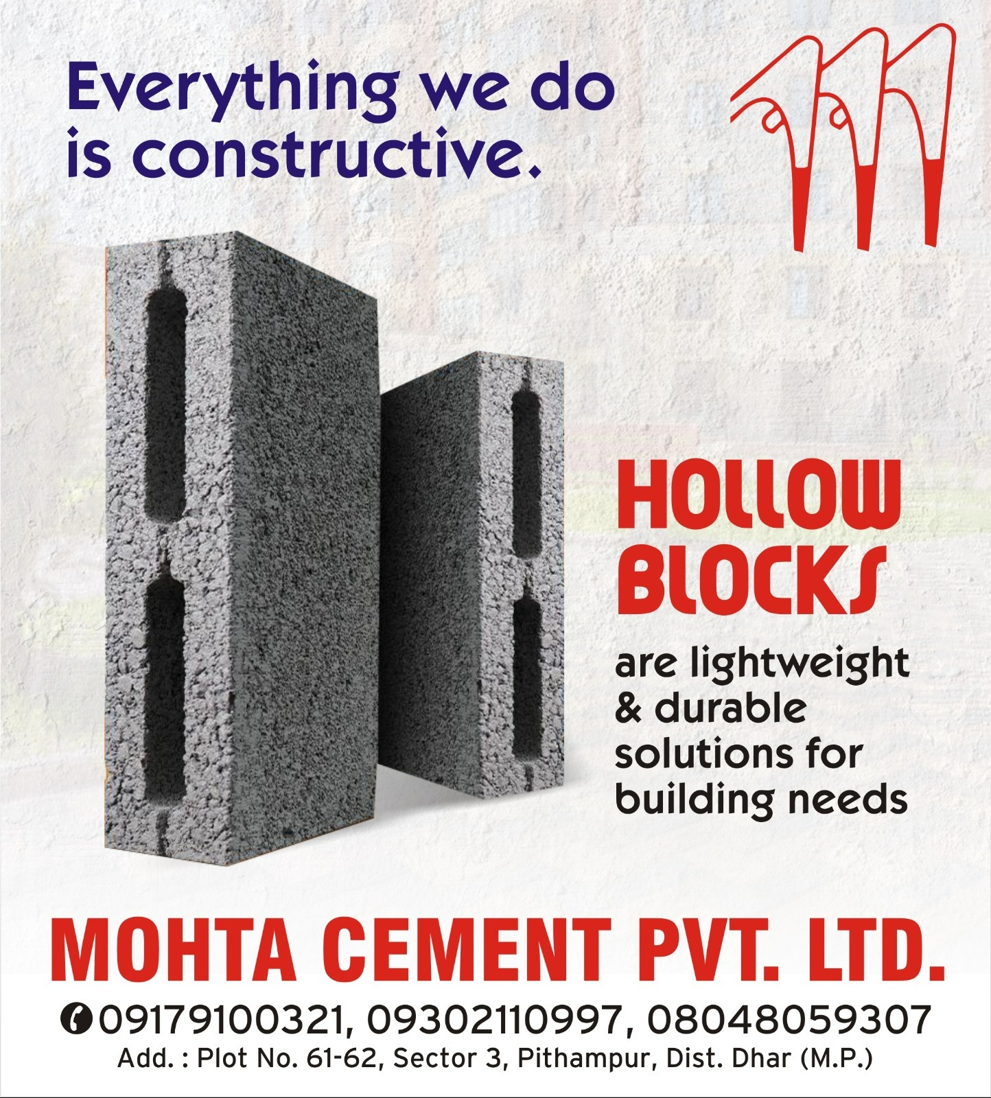 Mohta Cement Pvt. Ltd. is a trusted name and the best hollow blocks dealer in Indore, offering high-quality construction materials for residential, commercial, and industrial projects. Known for strength, durability, and precise finishing, their hollow concrete blocks are manufactured using advanced technology and premium-grade raw materials. These blocks provide excellent load-bearing capacity, thermal insulation, and sound resistance, making them ideal for modern construction.