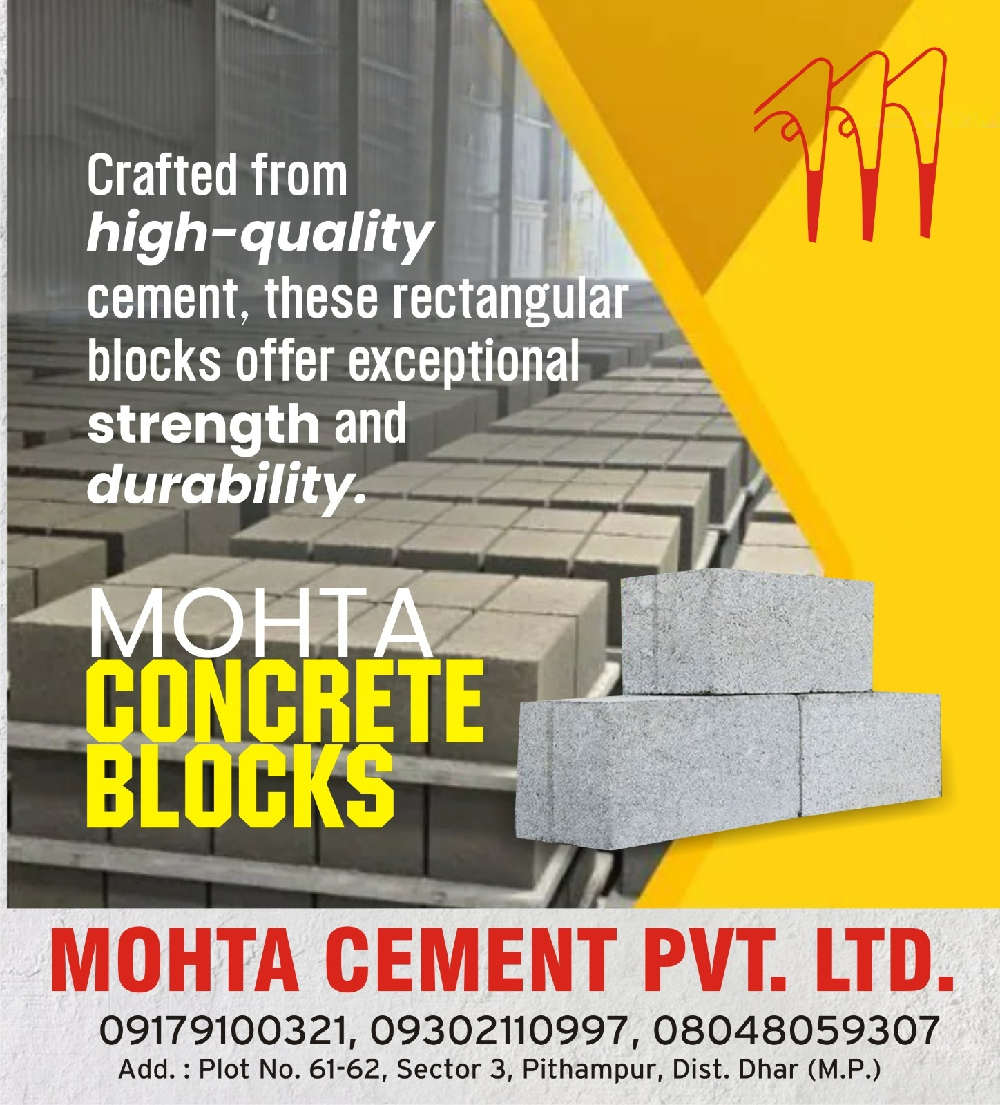 With a strong distribution network and commitment to timely delivery, Mohta Cement Pvt. Ltd. has become a preferred choice for contractors, builders, and developers in Indore. If you are planning a construction project, choose Mohta Cement Pvt. Ltd. for reliable, affordable, and high-performance concrete blocks that ensure strength and stability for every structure.
