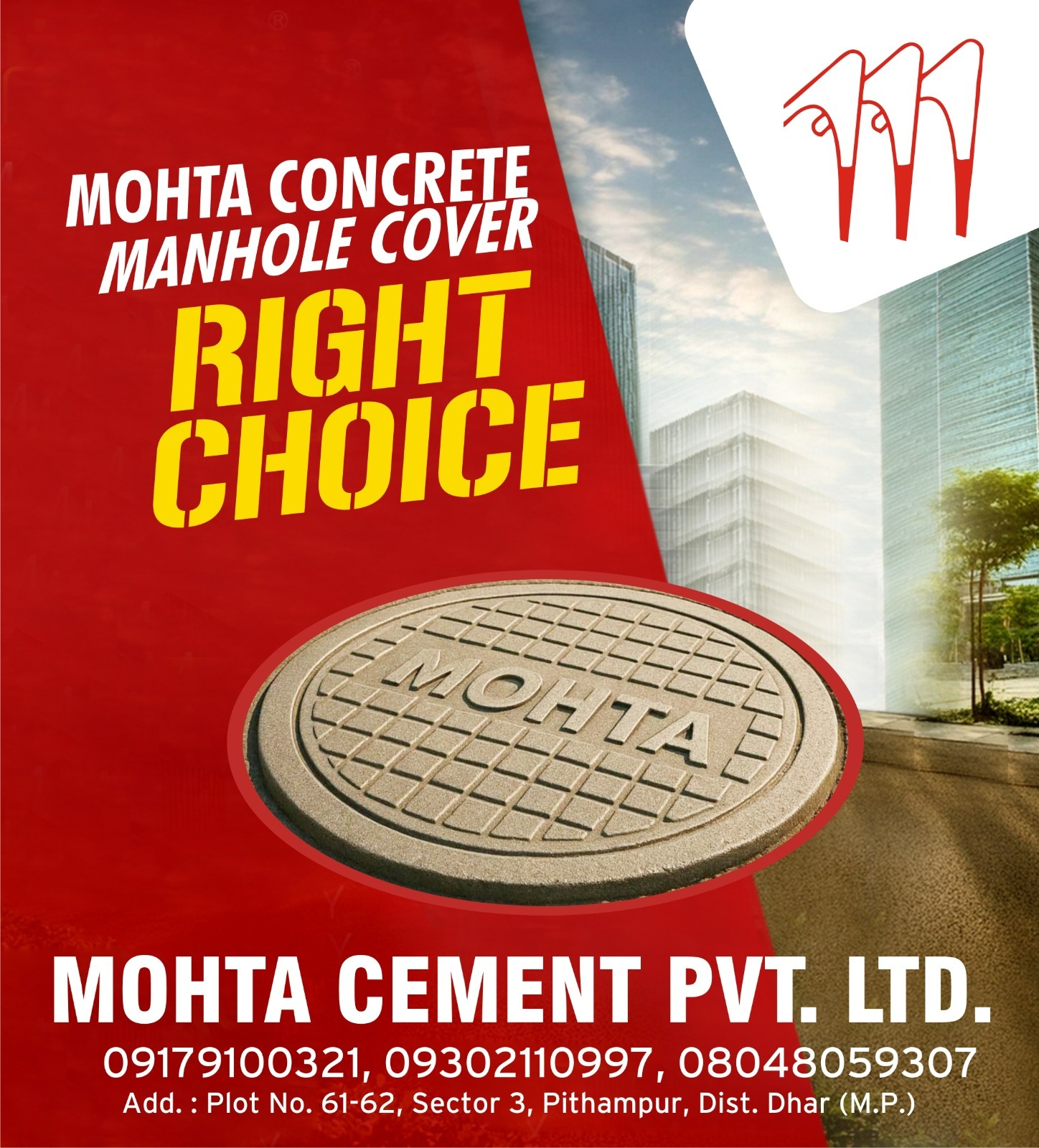 Choose Mohta Cement Pvt Ltd for trusted concrete manhole cover supply and get the best combination of strength, quality, and value. Contact us today for bulk orders and dependable construction solutions.