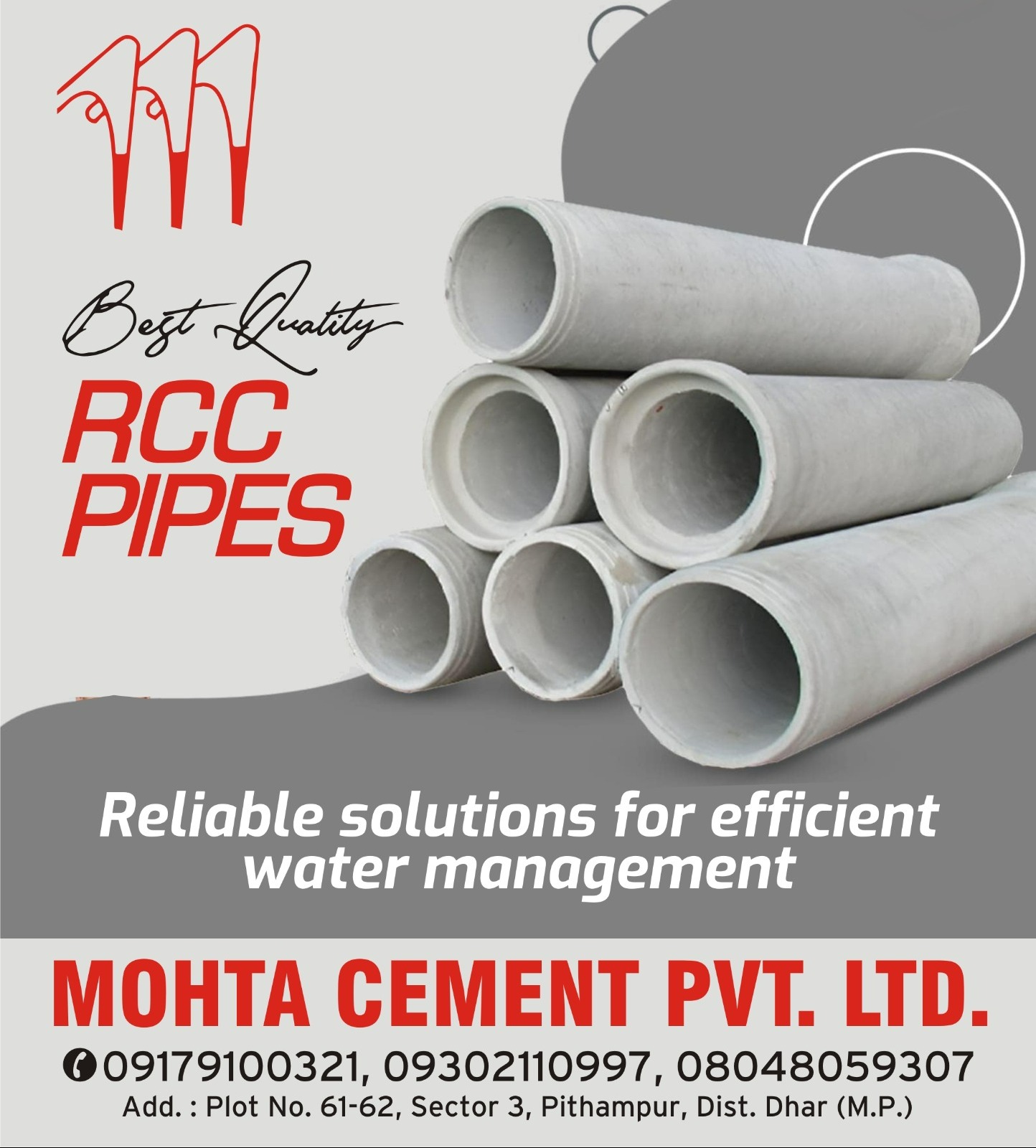 If you are looking for a reliable RCC pipe manufacturer in Indore, Mohta Cement Pvt. Ltd. is a trusted name for high-quality reinforced concrete cement pipes. The company specializes in manufacturing durable RCC pipes used for drainage systems, sewer lines, culverts, irrigation projects, and infrastructure development.