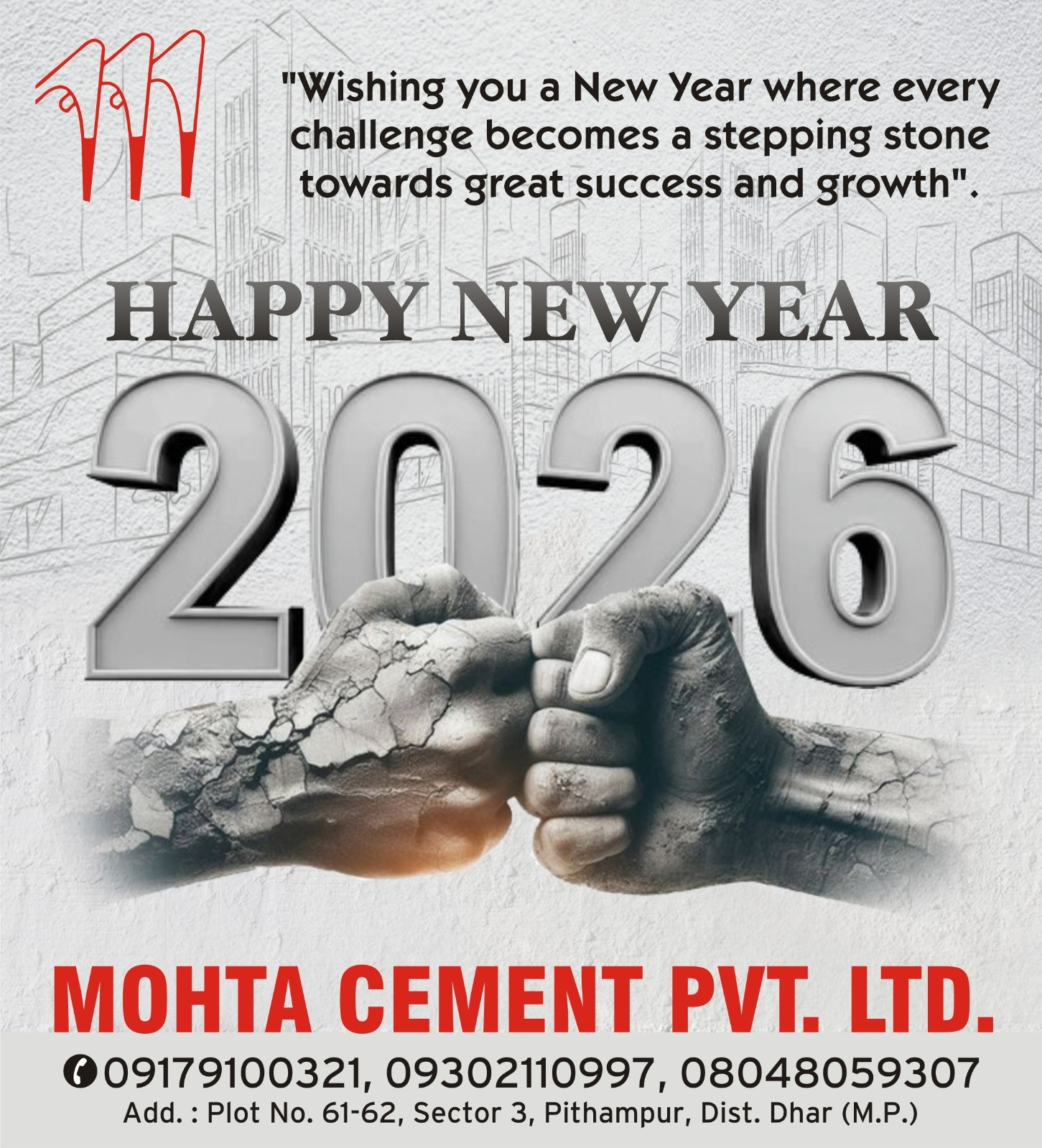 Sending good vibes and warm wishes for the New Year. Happy New Year ✨ - Mohta Cement Pvt Ltd